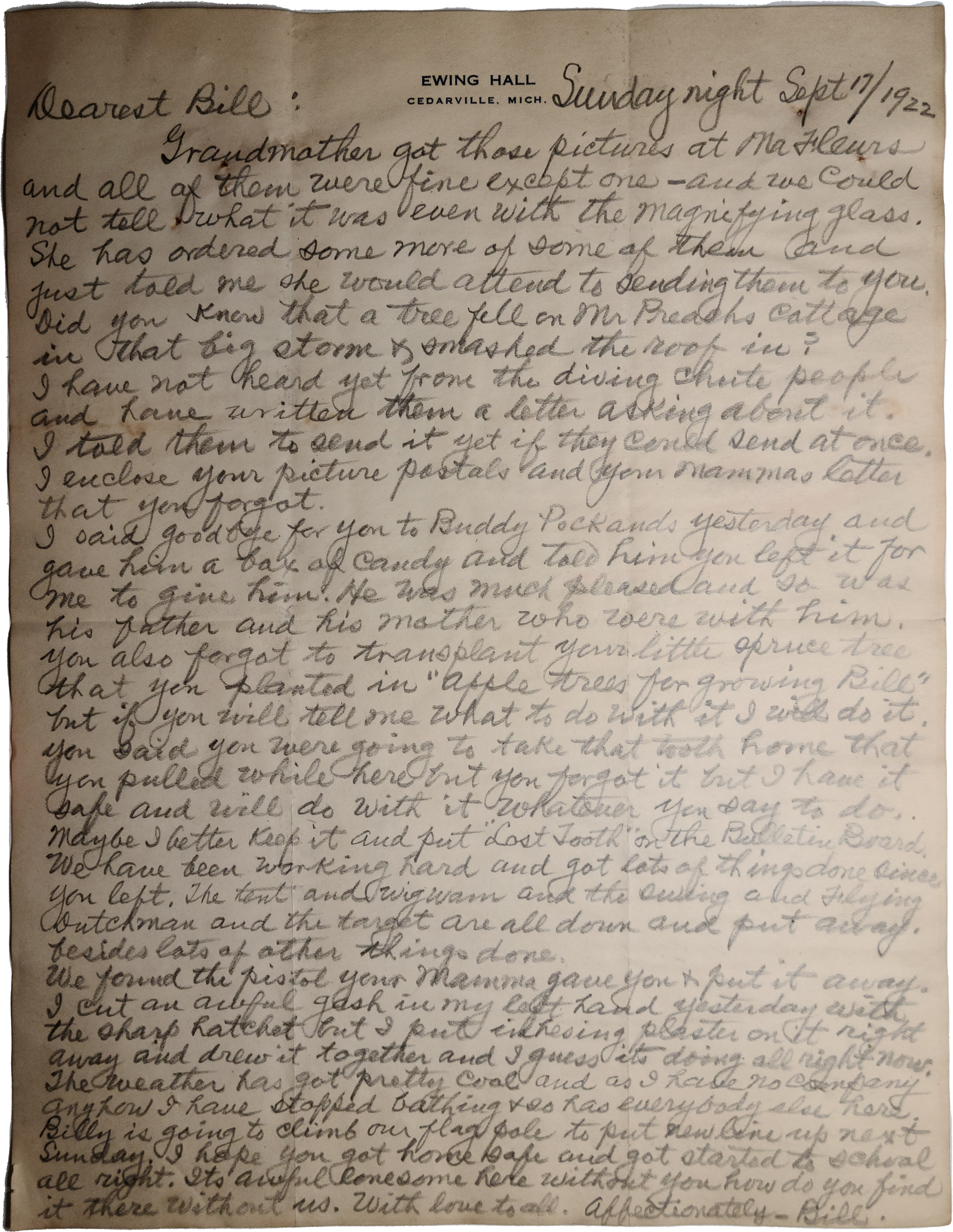 Letter from William Cox Ewing to Edwin S. Martin II 9/17/1922